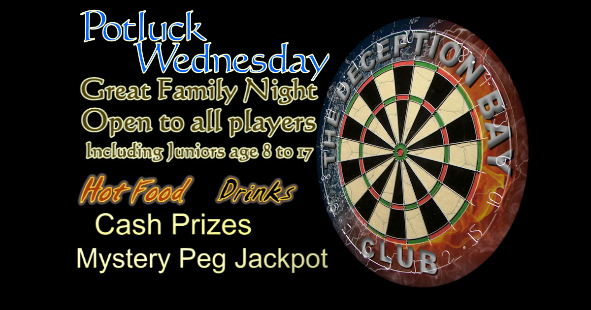 Potluck Wednesday is an additional open to the public social darts night to Potluck Friday during the Wednesday’s Peninsula Fair Darts Association Inc. are not playing their social darts.